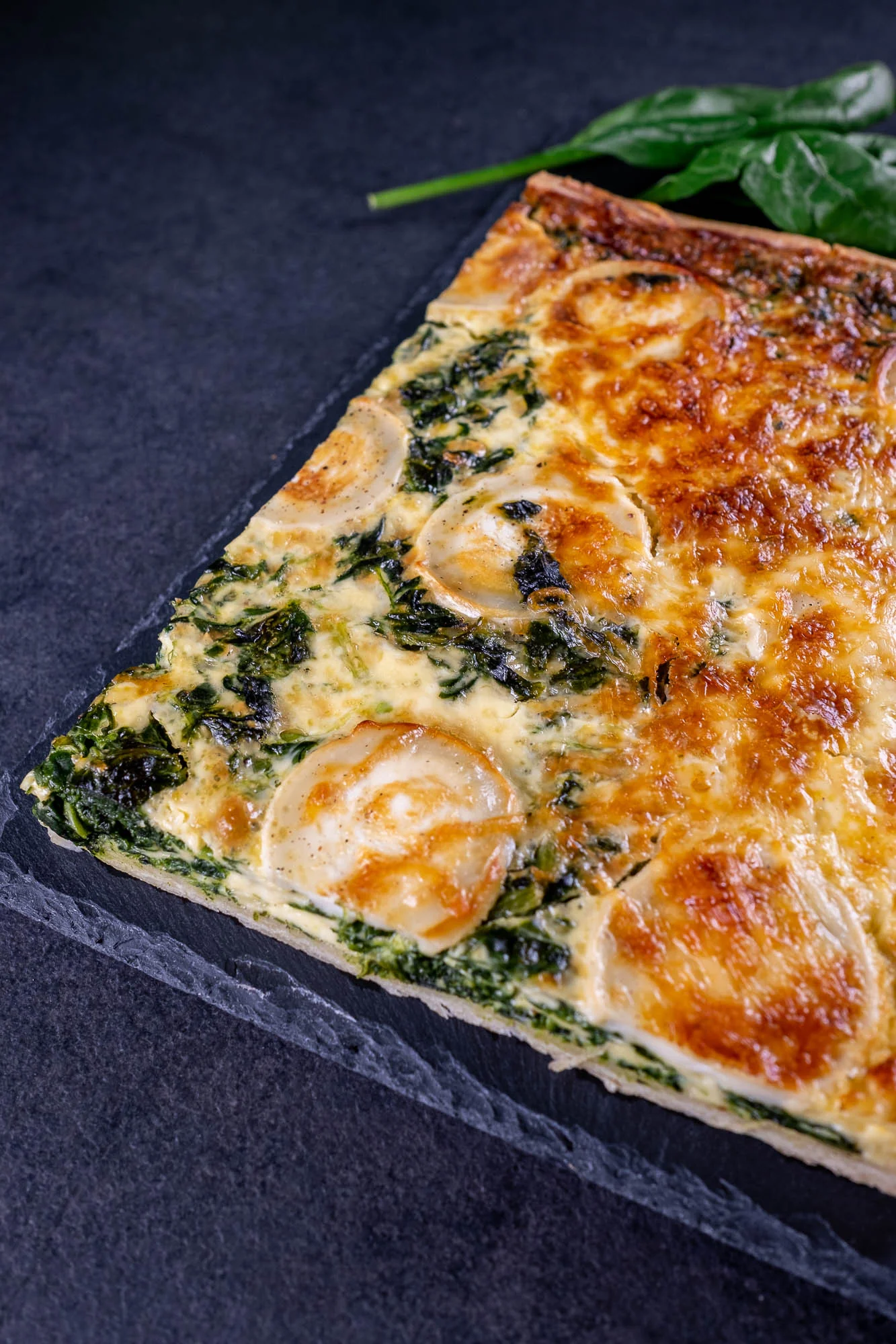 Des épinards cuisinés, de la crème, du fromage de chèvre et de l’emmental, réunis dans une quiche fondante et pleine de douceur.